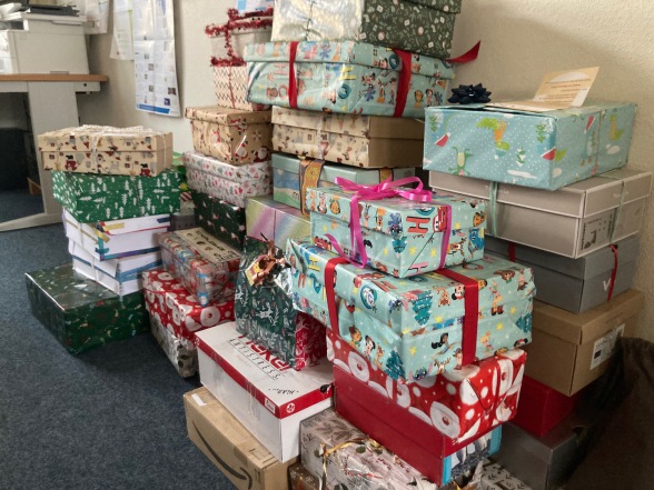 Diese ganzen Päckchen sind bei der Weihnachtspäckchenatktion für geflüchtete Kinder in Blankenburg zusammengekommen und haben sicherlich viele Kinder erfreut. Vielen Dank an alle helfenden und beteiligten Hände.